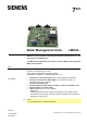 Disposal notes The unit contains electrical and electronic components and must not be disposed of together with domestic waste. Local and currently valid legislation must be observed. Type Mains voltage Phase (L) / neutral conductor (N) interchangeable Additional potential-free relay output for pump heating circuit / alarm output Integrated DHW relay Interface to OpenTherm Type summary S55405-C305-D... LMU34.210D... AC 230 V ˜ ˜ --- ˜ S55405-C30x-D... LMU34.211D...