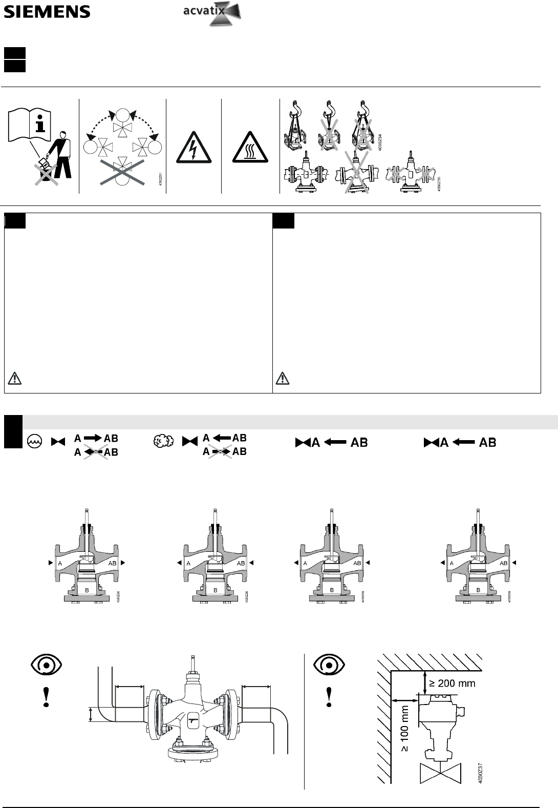 ∂ Only qualified staff may mount, commission and servcie the valves.