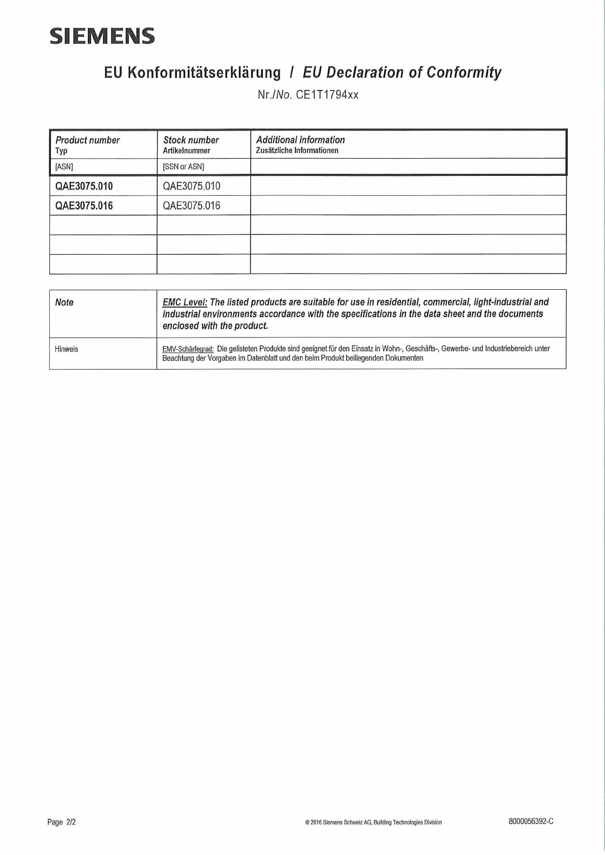 EMV-Schärfegrad: Die qelisteten Produkte sind geeignet für den Einsatz in Wohn-, Geschäfts-, Gewerbe- und Industriebereich unter