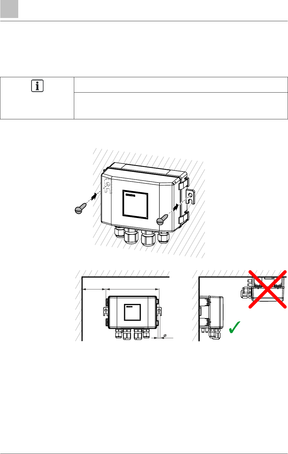 ● Screw the sensor at the 2 brackets (on the device sides) to the mounting