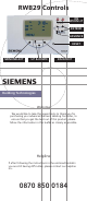 7 Day Programming RWB29 Programmer Building Technologies Siemens Building Technologies Hawthorne Road, Staines, Middlesex TW18 3AY Technical helpline: 0870 850 0184 Tel. 01784 461616 Fax. 01784 464646 www.sbt.siemens.