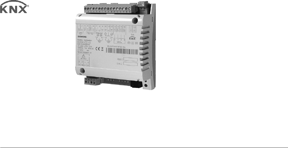 Types The RXB24.1 room controller has the following outputs: Type AC 24 V triac outputs RXB24.1 For 2 thermic valve actuators or two 3-position actuators RXZ20.1 Accessories: Terminal covers Ordering When ordering please specify the quantity, product name, type code and application group. Example: 30 Room controllers, type RXB24.1/CC-02 Compatibility The RXB24.1 room controller is compatible with field devices from Siemens Building Technologies and with KNX / EIB-compatible third-party devices.