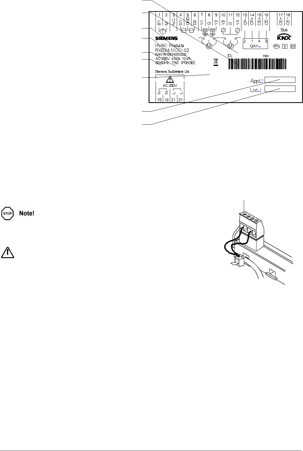 • KNX / EIB bus (terminals CE+ and CE-) for communication with: