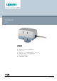技术参数 电源 工作电压 电压容差 AC 230 V +10%/-15% 频率 50/60 Hz 耗电量 50 Hz 时为 6 VA(仅在运行时) 接入保险丝或者断路器电流 外部,2 A 快熔 信号输入 1) 控制信号 两位 SPST 并行运行 允许 2) 1) 2) 断相和脉宽调制 (PDM) 信号不适用,三位操作不允许,SPST = 单刀单掷。 出。 请考虑控制器电源输 运行数据 触点 Y 断电时阀位 见 "技术设计 [➙ 2]" 运行时间(开/关) 50 Hz 时为 12 秒 60 Hz 时为 10 秒 驱动力 100 N 额定行程 5 mm 连接阀门中介质的允许温度 1...110 ℃ 电气连接 连接电线(内置) 3 芯,0.8 米 2 3 x 0.75 mm (18 AWG) 安装 固定在阀门上 塑料连接螺母 M30 x 1.