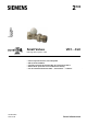 Dimensions R Rp D C 2103M01 E G A B Dimensions [mm] Type DN A B VD115CLC 15 61 33 VD120CLC 20 65 40 VD125CLC 25 68 35 Published by: Siemens Switzerland Ltd. Smart Infrastructure International Headquarters Theilerstrasse 1a 6300 Zug Switzerland Tel. +41 58-724 24 24 www.siemens.com/buildingtechnologies C Thread [inch] D 46.5 24.5 E 35 Weight [kg] Rp R G 1/2 1/2 3/4 0.28 3/4 3/4 1 0.33 1 1 1 0.