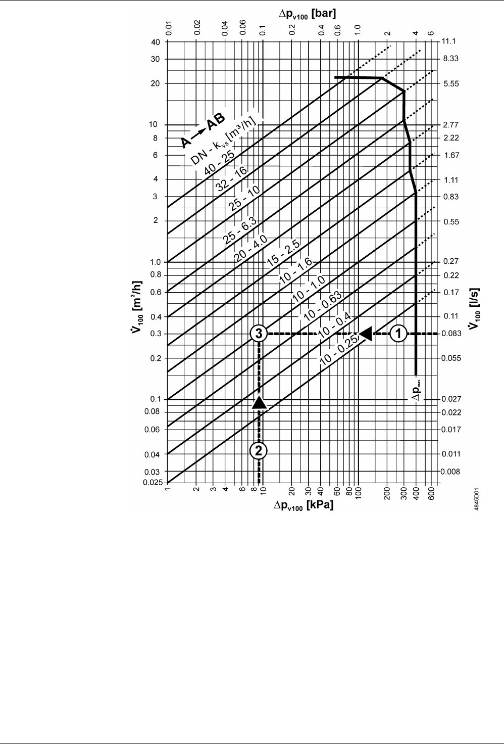 = Differenzdruck über dem voll geöffneten Ventil und dem Regelpfad A → AB bei