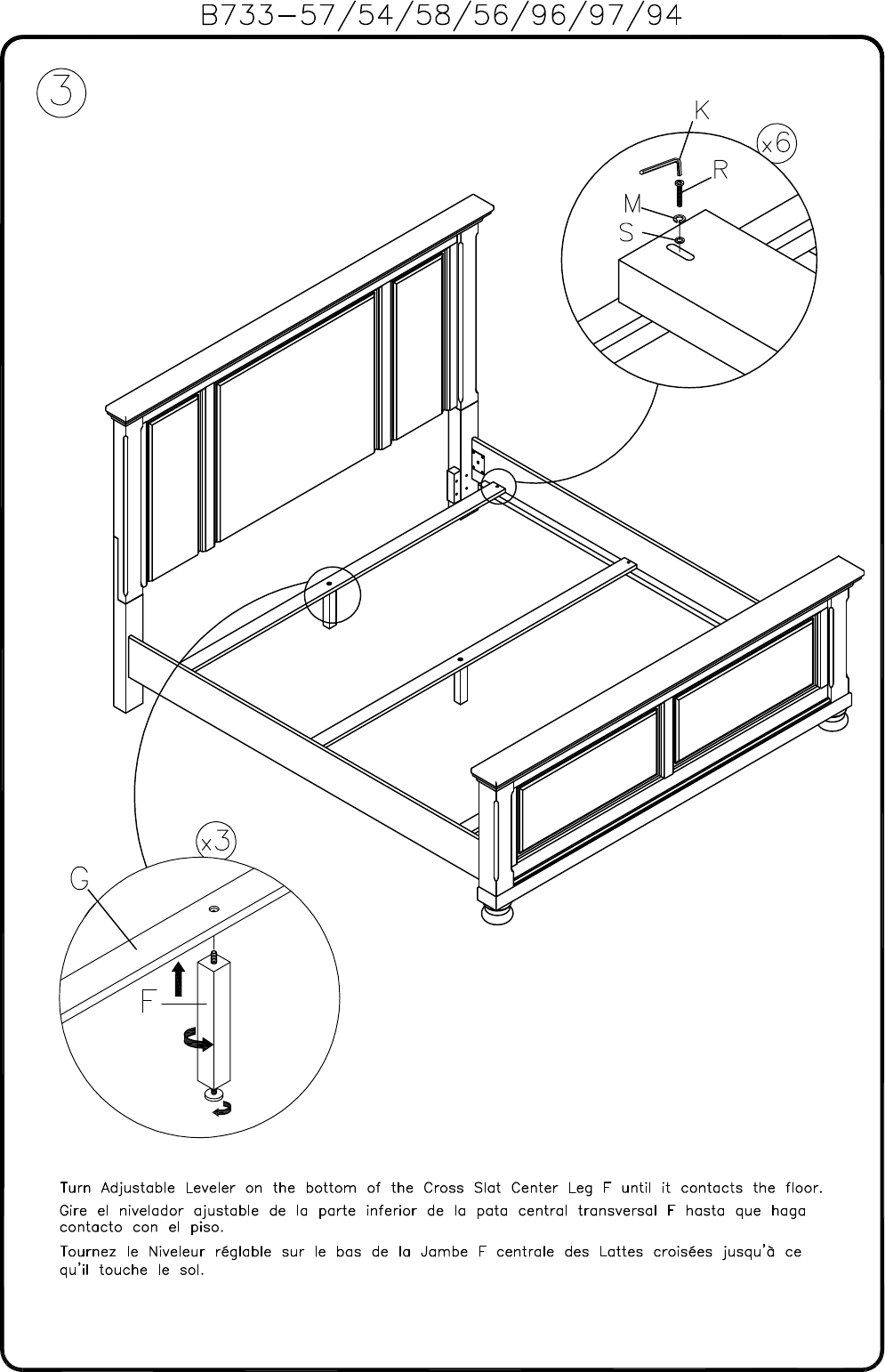 旋转床板条支撑脚底部的调整脚垫直到它接触地面