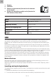 SK Hlásenia na displeji „oooo“ Meranie tuku Meranie tuku práve prebieha, zostaňte v pokoji stáť na váhe a uistite sa, že bosými nohami stojíte na nášľapnej ploche. „C“ Kalibrácia Vyskytla sa chyba, preto opakujte meranie, aby ste získali správne hodnoty. „Err“ Preťaženie váhy Došlo k preťaženiu váhy. Vážený objekt je ťažší než maximálna váživosť váhy. Zostúpte z váhy, aby ste ju neponičili. „Lo“ Nízky stav batérií Stav batérií je veľmi nízky, je preto potrebné ich vymeniť.