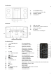 Vorderseite: 11. 12. 13. 14. CD-Fachabdeckung Fernbedienungssensor (IR) Anzeige / Display Lautsprecher 15. 16. 17. 18. USB-Anschluss Anschluss für 75-Ohm-Antenne AUX-In-Anschluss DC-IN 9V Anschluss für Netzadapter Rückseite: 16 17 18 15 Fernbedienung: 1. 2. 3. 4. 5. STAND-BY/ON SLEEP EQ MEM./CLOCK | 6. 7. X-BASS PRESET/FOLDER 8. 9. 10. 11. 12. MUTE ▲ OPEN/CLOSE TIMER SOURCE PLAY MODE / ST. 13. 14. 15. 16. 17. 18. 19.