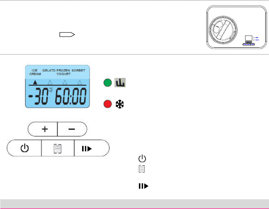 - Das Rührwerk beginnt zu arbeiten und die grüne LED-Anzeige leuchtet auf.