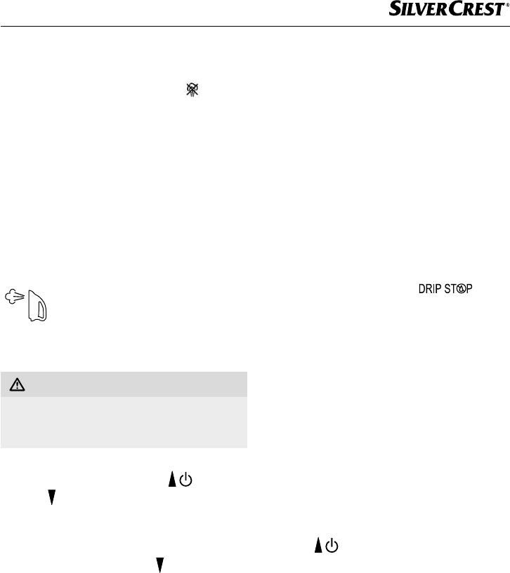 halten, tritt Dampf aus der Bügelsohle 0 aus.