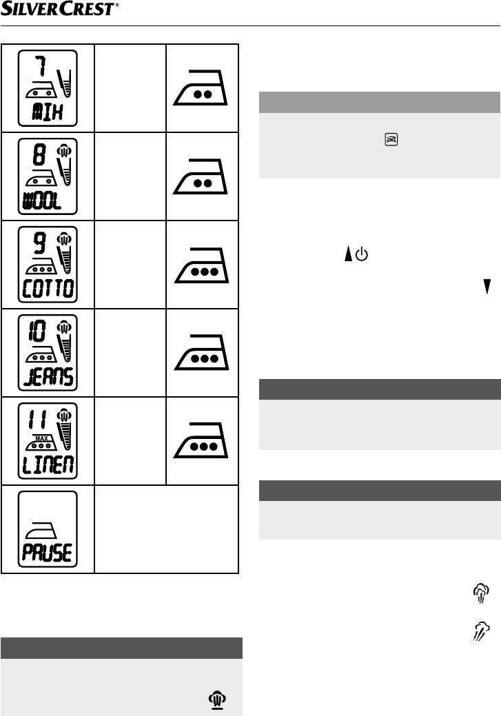3) K zapnutí žehličky a nastavení teploty stiskněte