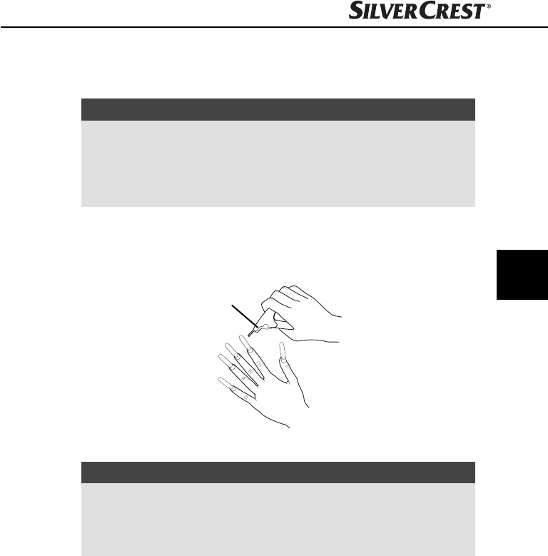 ♦ Houd de nagel-tip i 10-12 seconden vast en druk hem daarbij met voldoende