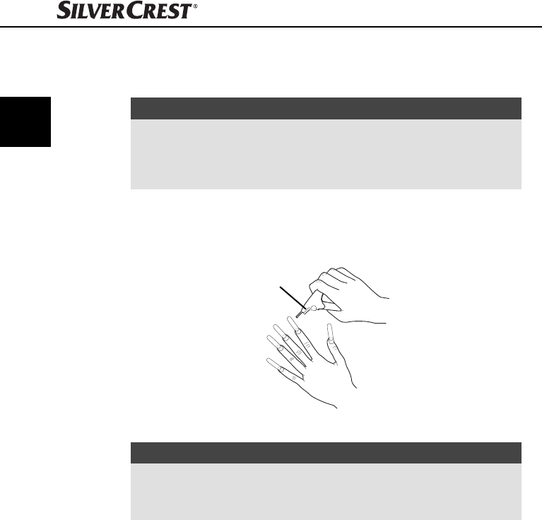 Ƈ Pidä kynsitippiä i paikoillaan 10-12 sekuntia ja paina sitä samalla riittä-