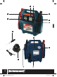 234578 Arrancador de emergencia y compresor de aire Características del producto 1 Luz de trabajo 2 Pinza positiva 3 Voltímetro 4 Interruptor de la luz de trabajo 5 Pinza negativa 6 Botón de prueba de batería 7 Toma de carga 8 Manómetro 9 Manguera de aire comprimido 10 Toma del encendedor de cigarrillos 12 V 11 Interruptor del compresor 12 Cargador de 230 V 13 Cargador de 12 V Desembalaje • Asegúrese de que el embalaje contiene todas las partes y que están en buenas condiciones.