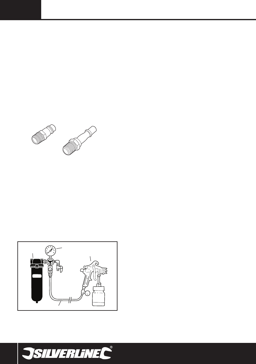 zwischen Druckluftregler und Spritzpistole eingestellt werden.