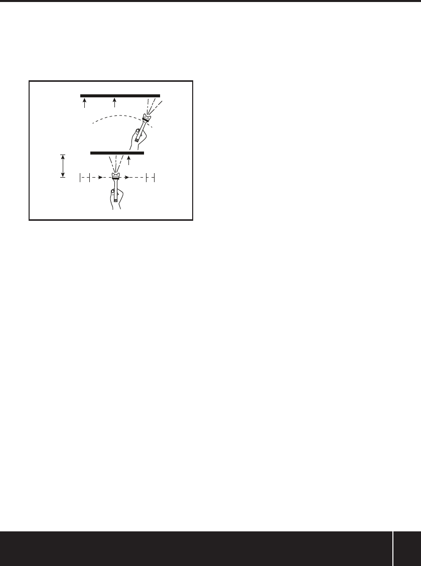 • Houdt de verfspuit op ongeveer 200-250 mm afstand van het oppervlak