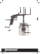 GB Product Familiarisation 1 Quick Connector 2 Trigger 3 Hanging Hook 4 Fluid Connector 5 Knurled Locking Nut 6 Nozzle 7 Lid with Bayonet Closure 8 Paint Container Air supply connection Pressure regulator Separator filter unit Intended Use Spray gun Air line • Spray gun, powered by compressed air from a compressor, for spraying of undercoating and other heavy paints and coating materials Unpacking Your Tool • Carefully unpack and inspect your tool.