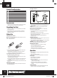 NL Productbeschrijving 1 Snelkoppeling 2 Trekker 3 Hanghaak 4 Vloeistof verbindingsstuk 5 Gekartelde vergrendelmoer 6 Mondstuk 7 Deksel met bajonetsluiting 8 Verfcontainer Aansluiting van de luchttoevoer Scheider filtereenheid Drukregulator Verfspuit Luchtslang Intentioneel gebruik Pneumatische verfspuit, aangedreven door een compressor, voor het spuiten van onderlagen en andere verf en coating materialen Het uitpakken van uw gereedschap • Pak uw toestel / gereedschap uit.