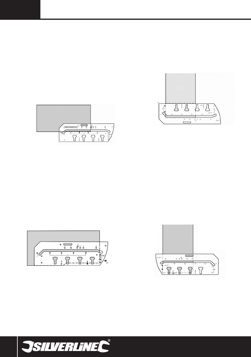 • Plaats de sjabloon op de rand van het werkblad (zie afbeelding) en klem
