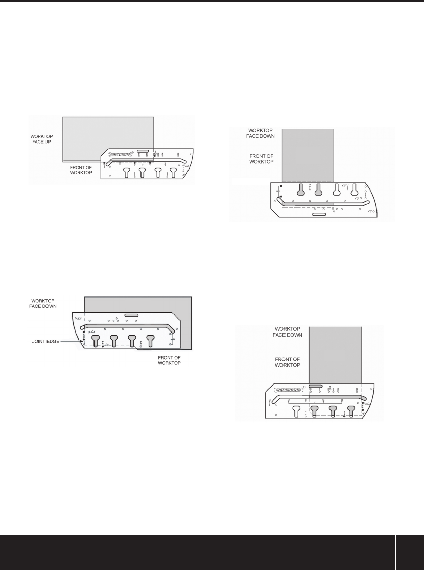 • Position the jig over the worktop edge (as shown), before securing the jig