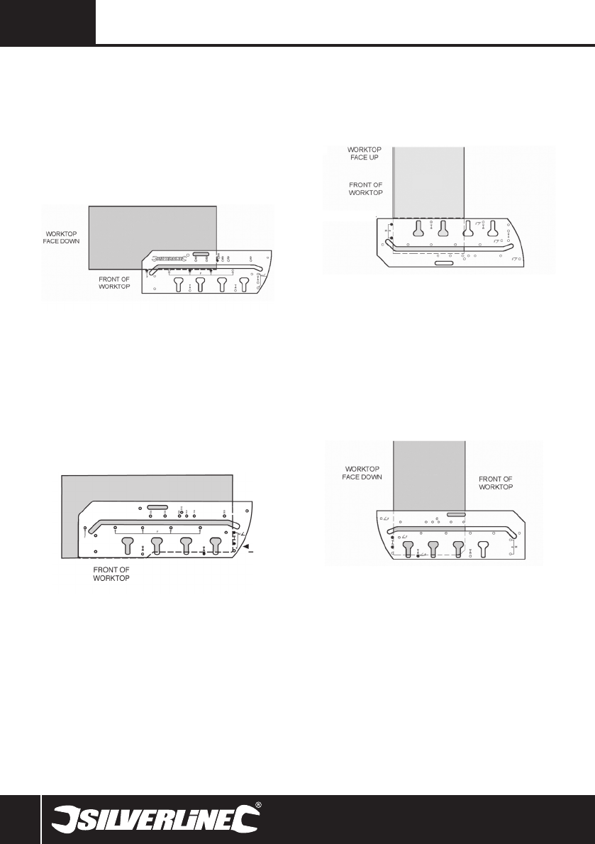 • Position the jig over the worktop edge (as shown), before securing the jig