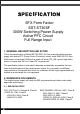 2.2. SAFETY CB: IEC 60950~1:2005(2nd Edition) and/or EN 60950~1:2006 +A11:2009 UL: UL 60951-1 , 2nd Edition, 2007-03-27 TUV: EN 60950-1:2006+All 3. INPUT ELECTRICAL SPECIFICATIONS 3.1. AC INPUT Parameter (1) Mi n. Nom. Max. Unit Vin (115VAC) 90 115 132 VAC rms Vin (230VAC) 180 230 264 VAC rms Vin Frequency 47 -- 63 HZ ◆ Nominal voltages for test purposes are considered to be within ±1.0V of nominal. 3.2.
