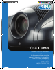 C3X Lumis 13 TECHNICAL SPECIFICATIONS ELECTRONICS GENERAL INFORMATION: PROJECTOR Input signals: • 1 COMPOSITE VIDEO (CVBS) gilded RCA type connectors 1.0 Vpp / 75 Ω, negative synchronisation • 1 S-VIDEO (Y/C) 4 pin mini-DIN connectors Y: 1.0 Vpp / 75 Ω, negative synchronisation C: 0.286 Vpp / 75 Ω, [NTSC burst rated level] 0.3 Vpp / 75 Ω [PAL, SECAM burst rated level] • 1 set of 4 RCA connectors (YPrPb/RGB H/V) - Component signal Y: 1.