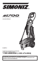 P R E S S U R E W A S H E R Instruction Manual 39-8673-0 If you have any questions or comments, please call our toll free hotline 1-866-4SIMONIZ (1-866-474-6664) PLEASE KEEP THE ORIGINAL BOX, PACKAGING AND RECEIPT. BEFORE OPERATING THIS UNIT, PLEASE READ THIS MANUAL THOROUGHLY AND RETAIN IT FOR FUTURE REFERENCE.