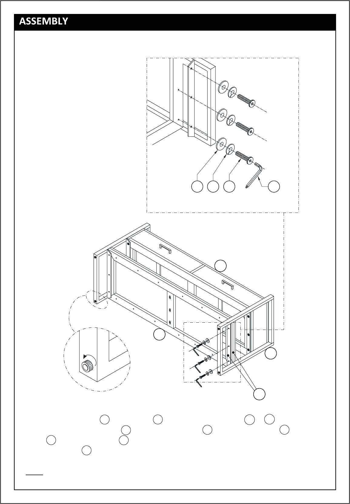 Note: Levelers on bottom of legs can be adjusted if floor is uneven.