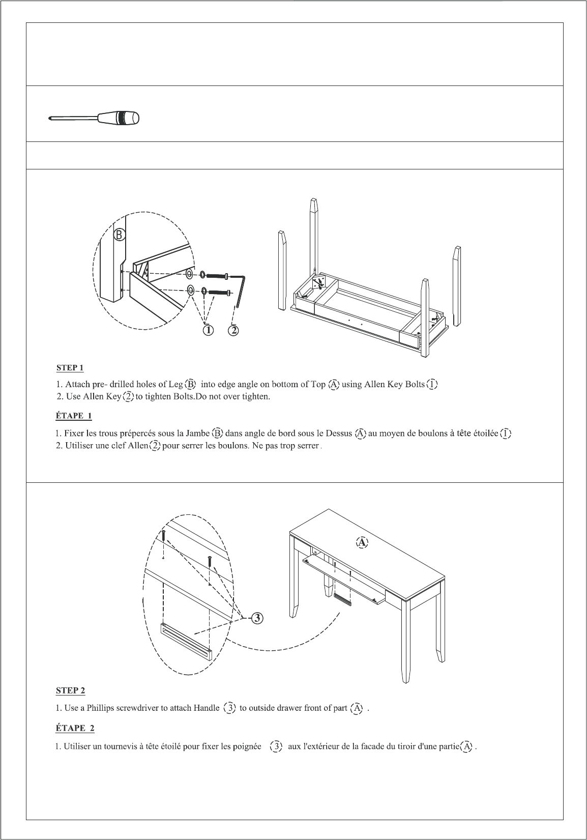 SVP utilisez un tournevis pour les vis. Le tournevis n’est pas fourni avec le produit.