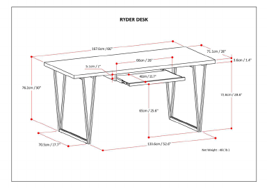 Ryder Natural Aged Brown Desk with Keyboard Tray