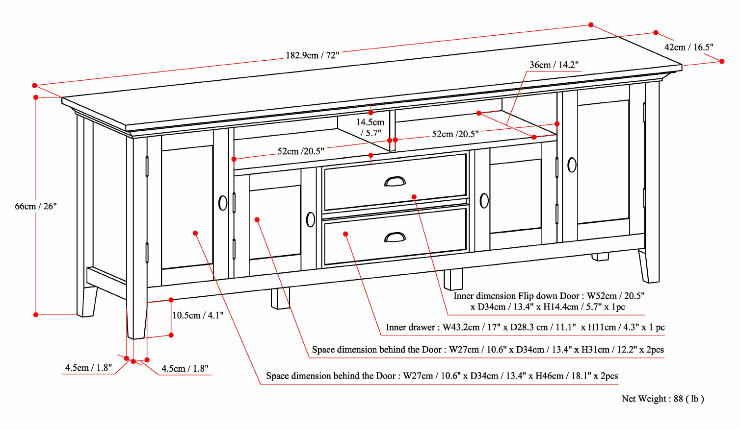 Redmond SOLID WOOD 72 inch Wide Transitional TV Media Stand in Brunette Brown For TVs up to 80 inches - Brunette Brown