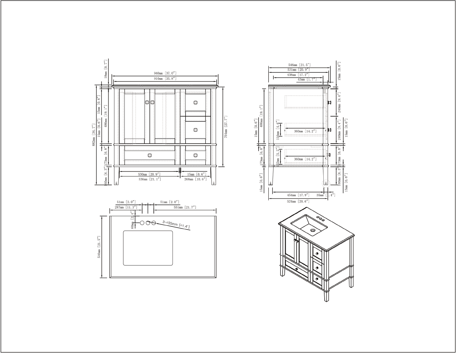 Chelsea 36 in. Vanity in Soft White with Quartz Marble Vanity Top in White and Right Off Set Undermount Sink