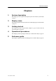 Reference manual Chapters 1 System description This chapter presents a general description of the echo sounder system. Refer to page 1. 2 Display views This chapter explains the layout of the echo sounder display presentation. Refer to page 12. 3 Getting started This chapter provides an operational example to get you started with the operation. Refer to page 26. 4 Operational procedures This chapter provides specific procedures for common tasks. Refer to page 37.