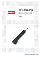 105 mm (4 in) Dimensioner 60 mm (2.3 in) 610 mm (24 in) MID STROKE Specifikationer Forsyningsspænding 12 V (10–16 V) DC Strømforbrug (Typisk) Standby – 60 mA Auto – 500 mA NMEA format (TP22 & TP32) Overholder NMEA 0183 version 2.0, 2.3 og 3.0 (4800 baud, ingen paritet, 8 bit, 1 stop bit) TP10 – Gevind Drive System TP22 – Gevind TP32 – Kuglegevind Operating Stroke 250 mm TP10 – 65 kg Peak Thrust TP22 – 70 kg TP32 – 85 kg 0 kg P10 – 6.9 sekunder TP22 – 6.9 sekunder TP32 – 4.