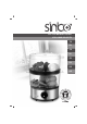 NEDERLANDS SINBO SFS 5703 MINI STOOMKOKER GEBRUIKSHANDLEIDING Beste Klant, Om mogelijke schade wegens foutief gebruik te voorkomen, verzoeken wij u de gebruikshandleiding aandachtig te lezen vooraleer u dit apparaat op het stroomnet aansluit. Neem vooral de veiligheidsinstructies goed in acht. Ingeval u het apparaat aan een ander gebruiker doorgeeft, vergeet niet de handleiding mee te geven. TECHNISCHE SPECIFICATIES • 2 etages voedsel stomer • Capaciteit:4.
