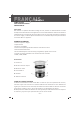 ATTENTION doit être remplacé par un centre de service déterminé par le fabricant étant donné que des outils spéciaux sont nécessaires. • N’immergez jamais le cuiseur à vapeur dans l’eau pour le nettoyer. • N’utilisez pas le cuiseur à vapeur à des fins autres que celles pour les quelles il est conçu. • Tenez l’appareil à distance des sources de chaleur et des matériaux combustibles, l’appareil doit être placé sur une surface plate lors de l’opération de cuisson.