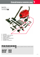 Dampfreiniger 7 Das passende Zubehörteil für die Fläche auswählen, die sauber gemacht werden soll, und am Verlängerungsrohr oder direkt am Pistolengriff einrasten. Der Dampfstrahl wird am roten Knopf am Pistolengriff eingeschaltet. Die Stärke und Kraft des heissen Dampfstrahls garantieren für eine nie dagewesene Sauberkeit und Hygiene!! Genauere Informationen zu den verschiedenen Zubehörteilen finden Sie im Kapitel 10 “Zubehörteile”.