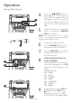 Operation Playing a CD (Continued) 14 PAUSE: During playback, if you wish to pause the disc momentarily, press the / STOP button; the PLAY/PAUSE indicator will blink. Press again to resume normal playback. 15 Press and hold the /STOP button to stop playback. 16 RECORD YOUR VOCAL PERFORMANCE: Insert a USB drive first, then press the REC button; the song will start over and recording will begin. The record indicator will light solid.