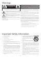 Warnings CAUTION: TO PREVENT ELECTRIC SHOCK, MATCH WIDE BLADE OF PLUG TO WIDE SLOT AND FULLY INSERT. CAUTION RISK OF ELECTRIC SHOCK DO NOT OPEN CAUTION: TO REDUCE THE RISK OF ELECTRIC SHOCK, DO NOT REMOVE COVER (OR BACK). NO USER-SERVICEABLE PARTS INSIDE. REFER SERVICING TO QUALIFIED SERVICE PERSONNEL.