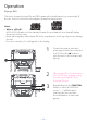 Operation Playing Songs from the USB u v 1 Connect the unit as described previously; it should be connected to a TV. Press the button to turn the unit on. 2 Insert a USB flash drive into the USB slot on the unit. 3 w Repeatedly press the FUNCTION button to select the USB mode; “USb” will appear when searching the drive and then the total number of files will appear. Note: It is highly recommended to have it connected to a TV for USB playback.