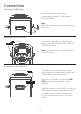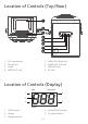 Position des commandes (dessus/Arrière) u v w x y U V W 1. 2. 3. 4. Compartiment de CD Supports de micro Support Jack de sortie vidéo 5. 6. 7. 8. Prise AUDIO OUT (droit) Prise AUDIO OUT (gauche) PRISE DE SORTIE Prise de sortie DC Position des commandes (Affichage) CDG PLAY/PAUSE 4 1 2 5 3 PROGRAM REPEAT 1. 2. 3. Indicateur CDG Affichage Voyant RÉPÉTER 4. 5.