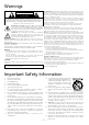 Advertencias PRECAUCIÓN RIESGO DE DESCARGA ELÉCTRICA NO ABRIR PRECAUCIÓN: PARA REDUCIR EL RIESGO DE DESCARGAS ELÉCTRICAS, NO QUITE LA CUBIERTA (NI LA TAPA POSTERIOR) NO HAY PIEZAS REPARABLES POR EL USUARIO DENTRO. DERIVE LAS REPARACIONES A PERSONAL DE SERVICIO CALIFICADO. Las marcas de Precaución se ubican en el panel inferior.