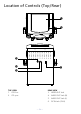 Location of Controls (Front) al am u w y V v an x ao ap aq ar as U W bt at bl X bk bm ak bn bp bq bo br bs Display Lense 1. CDG/USB/BT Button 2. PROGRAM/REPEAT Button 3. Skip Back 9 Button 4. AUTO VOICE CONTROL Button 5. BLUETOOTH PAIRING Button 6. BLUETOOTH indicator 7. ON/OFF Button 8. SKIP 10- Button (MP3) 9. BALANCE Control 10. USB Port 11. LINE IN Jack 12. MASTER VOLUME Control 13. Play/Pause Button 14. Stop < Button 15. Skip Forward : Button 16. MIC VOLUME control 17.