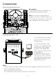 Connection Connecting to AC Power Insert the AC power cord into a conveniently located AC outlet having 120V AC, 60Hz. Note: Make all connections before connecting to AC power. Connecting to LINE IN Jack Connect an external device by using an appropriate cable (3.5mm audio cable not included) as shown. To External Unit AUDIO OUTPUT / HEADPHONE JACK Note: See page E17 to select and use the LINE IN function.