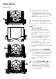 Operation Playing Songs from the USB (Continued) 13 an ao am ap PROGRAM: You can program up to 20 tracks for playback in any desired order. While in Stop mode, press the REP/PROG button; Program indicator will blink and “P00”appear. Select the first track using 9 or : buttons, then press the REP/PROG button. Repeat to set up to 20 tracks into memory. When done, press the PLAY/PAUSE button to start playback. Note: Press the STOP < button TWICE to stop and clear the program.