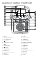 Location of Controls (Top/Front) u v w x y U V W X at ak al am an ao ap aq ar as bt bk bl bm bn bo bp 1. Handle 14. Display 2. MASTER VOLUME Control 15. Open/Close Tab 3. CD Compartment 16. Skip 4. 17. MIC VOLUME Control Button Button 5. VOICE EFFECT Control 18. Repeat/Program Button 6. 19. RECORD Button Button 7. ON/OFF Button 8. Button 20. Skip Button 21. LIGHTS Button 9. FUNCTION Button 22. STOP Button 10. PAIR Button 23. ENTER/Play/Pause Button 11.
