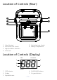 Location of Controls (Rear) v y u x w U 1. 2. 3. 4. Video Out Jack Mic Holder (side of unit) Right/Left Audio Out Jacks DC In Jack 5. Mic Holder (side of unit) 6. Battery Compartment Location of Controls (Display) CDG PLAY/PAUSE 4 1 2 5 3 PROGRAM REPEAT 1. CDG Indicator 2. Display 3. Repeat Indicator 4. PLAY/PAUSE Indicator 5.
