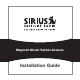 Installation The installation of the magnetic antenna consists of two installation steps: • Mounting the magnetic antenna and cover/tail on the vehicle • Routing the antenna cable through the vehicle to the SIRIUS radio or vehicle dock The following sections provide instructions for both installation steps. Antenna Mounting The SIRIUS Magnetic Mount Vehicle Antenna has a strong magnetic mount designed to hold the antenna in place during normal driving conditions (highway/city).